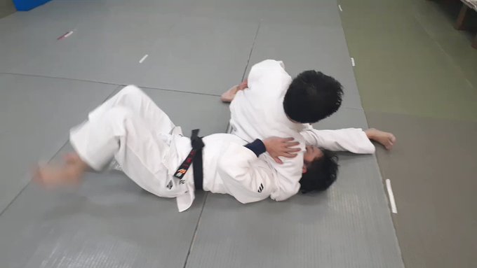 柔道練習。寝技の世界一周。手順をあらためて確認しました。受けがしっかり抵抗してくれると取りがやり易い。押さえ込みは袈裟固、後袈裟、横四方、横四方、縦四方、肩固、袈裟固の順です。極めでもっと胸を張った方がいいですね。 pic.twitter.com/TILbkiXUCA